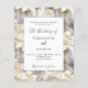 Weiße Lilien, Blume als Hintergrund. Personalisieren und fügen Sie Ihre Namen und die Details. 1 Blatt = 1 Einladung mit Druckkante bis Kante.