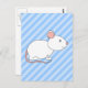 Eine niedliche, weiße Maus auf einem hellblau gestreiften Hintergrund. Ein schönes Cartoon-Bild für Haustiere.