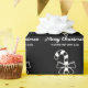 Desteis originelles Silhouette-Design aus weißer Linie eines Weihnachtscanes mit einem großen Bogen dekoriert. Es gibt auch zwei personalisierbare Textbereiche.