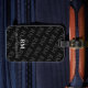 White Monogram Initials Gray Pattern Black Luggage Tag. Elegantes einfaches, modernes und männliches Schwarz-Weiß-Design, mit individuellem Text und Monogramm, mit einem exklusiven Monogramm-Muster, perfektes Geschenk für Reisende, für ihn, Papa, Großpa, Bruder, Freund, Chef, Mitarbeiter oder Mitarbeiter.