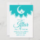 Silhouette in Weiß einer Moschee in einem Halbmond mit einem dekorativen Rahmen. Hintergrund und Text sind aquamarin-blau, können aber beliebig farbig angepasst werden. Ideal für den Monat Ramadan Iftar oder Eid Feiern.