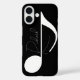 Weiße Musiknote mit Individuelle Name auf Schwarz iPhone 16 Hülle