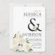 Ein themed mit BlumenSet der einzigartigen weißen Rose Einladungen stellte speziell zu Ihrer zukünftigen Hochzeit her. Sie kennzeichnen ein mutiges "u." das Symbol, das den Namen der Braut und des Bräutigams sich anschließt.