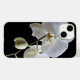 Schützen Sie Ihr Smartphone mit einer hübschen White Orchid Blume auf Black iPhone Gehäuse. Dieses elegante Gehäuse mit Blumenmuster zeigt ein Blumenfoto aus weißer Phalaenopsis-Orchideenblüte auf dem Stamm mit schwarzem Hintergrund.