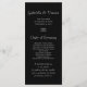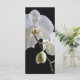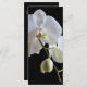 Geben Sie Ihren Gästen die Reihenfolge Ihrer Hochzeitsfeier und Zeitleiste mit dem eleganten White Orchid on Black Wedding Program. Dieses hübsche botanische Hochzeitsprogramm zeigt ein Blumenfoto mit weißer Phalaenopsis-Orchideenblüte auf dem Stamm mit schwarzem Hintergrund.