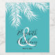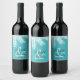 Weiße Palmen auf türkisfarbenem Hintergrund Hochze Weinetikett