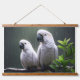 Weiße Papageien in Regen Wandteppich Mit Holzrahmen