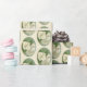 Dieses Geschenkpapier wird mit Kunstwerken in sanften Pastellfarben geschmückt, die drei zarte, cremige, weiße Hydrangea-Blüten aus weißem Oakelblatt mit grünen Knospen darstellen.