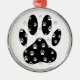 Niedliche weiße Pfoten auf schwarzem Pfotendruck.