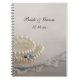 Weiße Perlen, Diamantring und blaue Spitzen-Hochze Notizblock