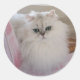 Weiße persische Katze auf rosa Stuhl Runder Aufkleber