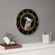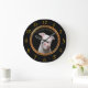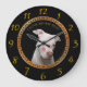 Weiße Pitbulle mit roten Küssen über sein Gesicht. Große Wanduhr