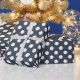 Weiße Polka-Punkte auf blau-grau Geschenkpapier