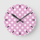 Weiße Polka-Punkte auf hellrosa Runde Wanduhr