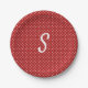 Weiße Polka-Punkte auf rotem Steppmuster-Hintergrund mit persönlichem Monogramm.