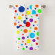 Ein gewagtes Punktmuster mit unebenen Regenbogenflecken auf weiß.