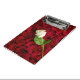 Weiße Rose auf roten Blumenblättern Mini Klemmbrett