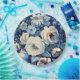 Antike, weiße Rosen und Gänse auf einem reichen indigoblauen Hintergrund.
