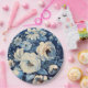 Weiße Rosen auf Indigoblau Hintergrund Pappteller
