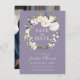 Senden Sie eine schöne Hochzeit speichern Sie die Dattelkarten mit einem zarten, weißen Wasserfarbenkreuzkranz aus Rose, Hydrangeas, gemischten Blüten und dem anschließenden Grün über einen beliebten Lavendel lila Hintergrund. Ein moderner, handgeschriebener Schrifttyp stellt sich Zaubern die Namen der Braut und des Bräutigams schön vor. Auf der Rückseite der Karte befindet sich eine Fotovorlage, mit der Sie Ihr gewünschtes Foto hochladen können.