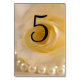 Pearls Wedding Tischnummern hübsch anpassen und für jeden Tisch eine andere Karte erstellen, für den Empfang, das Brautparty oder die Verlobungsfeier. Diese eleganten, individuell blumengeschmückten Hochzeitskarten sind mit einem Blumenfoto mit einer weißen Rosenblüte und einer weißen Perlenhalskette mit weißer Blume versehen.