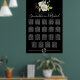 Weiße Rosenblüte auf schwarzen 19-Tisch-Sitze-Char Poster