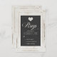 Diese schicke RSVP-Karte zeigt ein gedrucktes Bild eines weiß gekalkten rustikalen Holzrahmens mit einem Chalkboard-Look-Insert. Der typografische Stil der Schrift verleiht Eleganz und Romantik. Ideal für eine Vintage, rustikale oder landschaftliche Hochzeit.