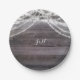 Weiße Saitenleuchten und rustikales Holz Pappteller
