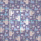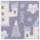 Whimsical Märchen Cartoon Burg Süßigkeiten Druck Muster. Rosa Schlosstürme mit Periwinkeldach, graue und blaue Hügel mit schneebedeckten Gipfeln, lollipop-wirl-Bonbons, eingewickelte Bonbons, rosa Herzen mit blauen Bändern und verstreuten blauen doodle Blume.