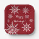 Weiße Schneeflocken auf Red Happy Holidays Pappteller