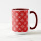 Weiße Schneeflocken mit roten Hintergrundfarben Tasse