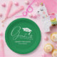 Weiße Script Graduation Cap Green Pappteller
