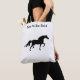 Stilvolle, schwarze Silhouette auf der weißen Tote Tasche. Text kann personalisiert sein. Pferde symbolisieren die Kraft des Geistes der Natur.