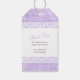 Weiße Spitze auf lila Dankeschön Gastgeschenk Hoch Geschenkanhänger
