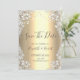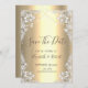 Streichleuchten und Spitzen auf einem goldenen Hintergrund. Schönes Save the Date, dass mit Ihrem Namen angepasst werden kann. Wählen Sie die Schaltfläche "Anpassen", um Stil, Farbe und Größe des Schriftartes zu ändern.