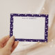Notenkarte mit einem nahtlosen Muster, in dem sich weiße Sterne abzeichnen, gepaart mit einem weißen Quadrat, in dem Ihr personalisiertes Monogramm in einem serifenlosen Schriftart geschrieben ist. Weitere Hintergrundfarben finden Sie in unserem Shop.