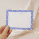 Notenkarte mit einem nahtlosen Muster, in dem sich weiße Sterne abzeichnen, gepaart mit einem weißen Quadrat, in dem Ihr personalisiertes Monogramm in einem serifenlosen Schriftart geschrieben ist. Weitere Hintergrundfarben finden Sie in unserem Shop.