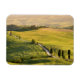 Rechteckiger Foto-Magnet einer Landschaft in der Toskana mit der berühmten Straße Bianca (weiße Straße/Schotterstraße) Gladiator Road Richtung Terrapille mit Zypressen entlang der Route am frühen Morgen nahe Pienza im Val d'Orcia Tal in Italien.