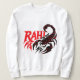 Ein weißes Sweatshirt mit kühlem grafischem Design eines Skorpion in einer dynamischen Pose.