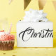 Schwarzes Skript der frohen Weihnachten auf einem weißen Hintergrund.
