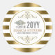 Weiße und goldene Streifen mit Glitzer-Abschluss-H Runder Aufkleber