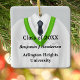Personalisiertes zweiseitiges Abschluss-Sake-Ornament, das in den Farben Weiß und Grün der Schule und Krawatte für den besonderen männlichen Senioren dekoriert ist. Viele andere Farbkombinationen für Männchen und Weibchen. Bearbeiten Sie im einfachen Texteditor Zazzle auf Vorder- und Rückseite benutzerdefinierte Texte.