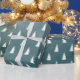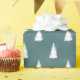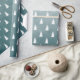 Weihnachtsgeschenkpapier mit einem weißen Fichtenbaum in einem wiederholen Muster auf einem blauen Fichtenholz-Oppelwald.
