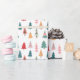 Festliches Weihnachtspapier, mit einem skurrilen Muster von bunten Bäumen.