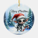 Weiße Weihnachtself mit Candy Cane. Keramik Ornament