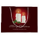 Weiße Weihnachtskerzen auf Rot mit individuellem T Große Geschenktüte