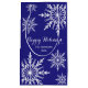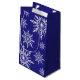 Personifizieren Sie die festlichen weißen Winter-Schneeflocken auf Blau-frohe Feiertage mittlerer Geschenk-Tasche und füllen Sie sie mit Ihren Weihnachts- oder Feiertagsgeschenken. Dieses elegante und kundenspezifische winterliche Weihnachtsgeschenk sackt verwickelte weiße Schneeflocken der Eigenschaft mit einem reichen blauen Hintergrund ein.