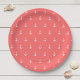 Paper Teller mit einem weißen Ankermuster mit einer bearbeitbaren Hintergrundfarbe (klicken Sie auf die Hintergrundfarbe anpassen und ändern). Sie machen großartige Teller für einen Strand oder ein Wasserfest. Klicken Sie zum Hinzufügen von Text auf Anpassen. *Bitte beachten Sie, dass das Zazzle-Wasserzeichen, das in der Zoomvorschau angezeigt wird, NICHT auf dem gedruckten Endprodukt erscheint. © Rosewood and Citrus
