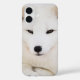 Foto nah-up eines niedlichen arktischen Fuchs ruhen im Schnee. Das Tier hat weiße Felle und braune Augen und sieht dich an.