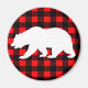 Rustikaler Kühlschrankmagnet mit weißer BärenSilhouette über einem schwarzen und roten Büffel Karo kariertes Muster. Fügen Sie Ihrem Kühlschrank oder Spind warme rustikale Freude hinzu!